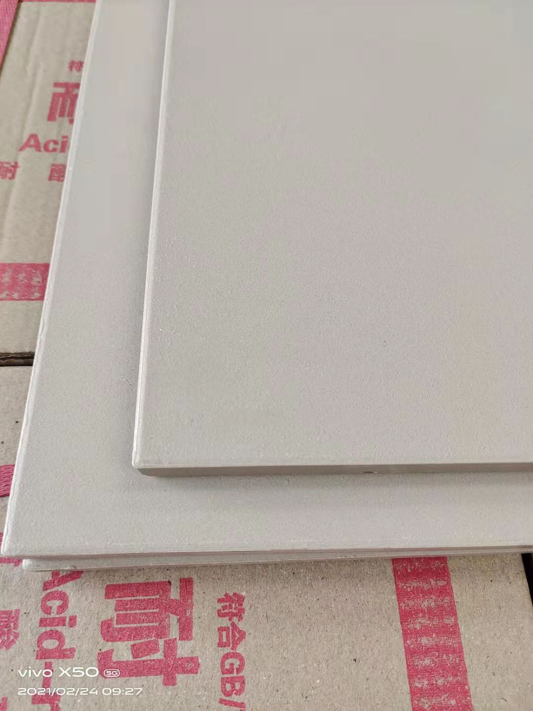 再來看下面耐酸磚的材質, 耐酸磚是以石英、長石、黏土為主要原料,經高溫氧化分解制成的耐腐蝕材料,耐酸堿度高,吸水率低,在常溫下不易氧化,不易被介質污染等性能,除氫氟酸及熱磷酸外,對溫氯酸水、鹽酸、硫酸、硝酸等酸類及在常溫下的任何濃度的堿類,具有優良的抗腐作用,可根據客戶要求訂做加工。